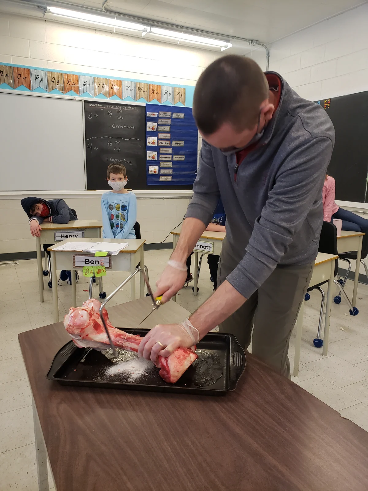 And then they had the opportunity to experience a bone up close when Mr. Johnson brought in a femur bone of a cow!