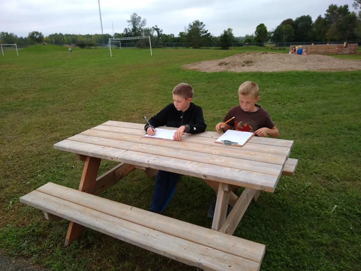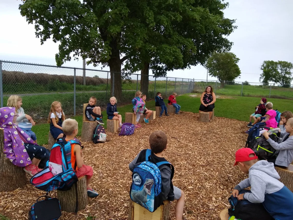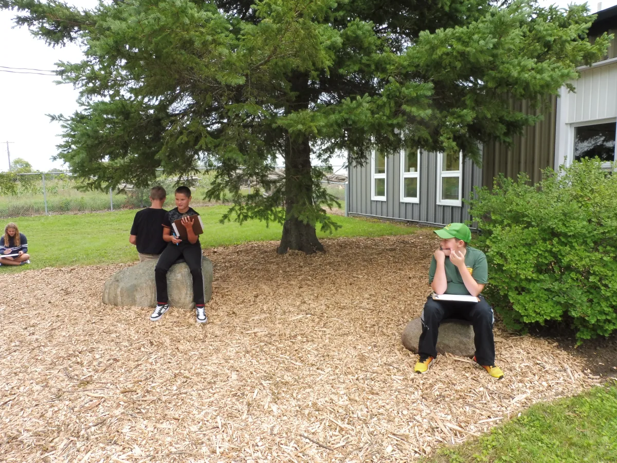 We try to bring our students outside when possible. Thanks to volunteers, we have some amazing outdoor learning spaces.