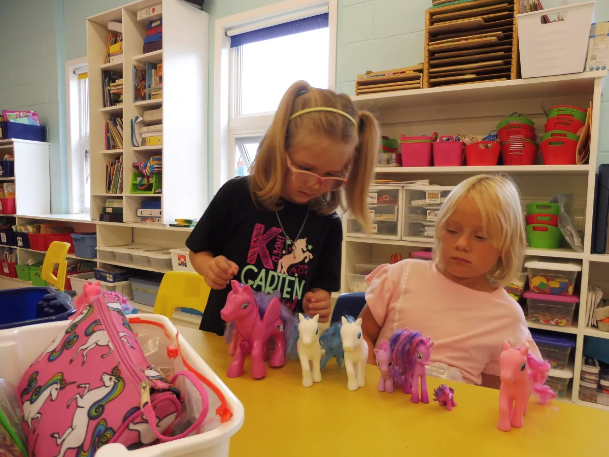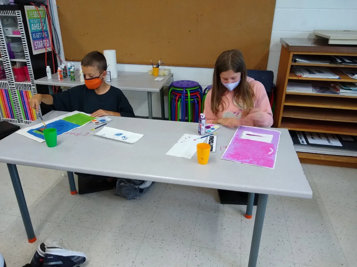 Students in Grade 3-8 are wearing masks inside the building and desks are spaced out to allow for physical distancing.