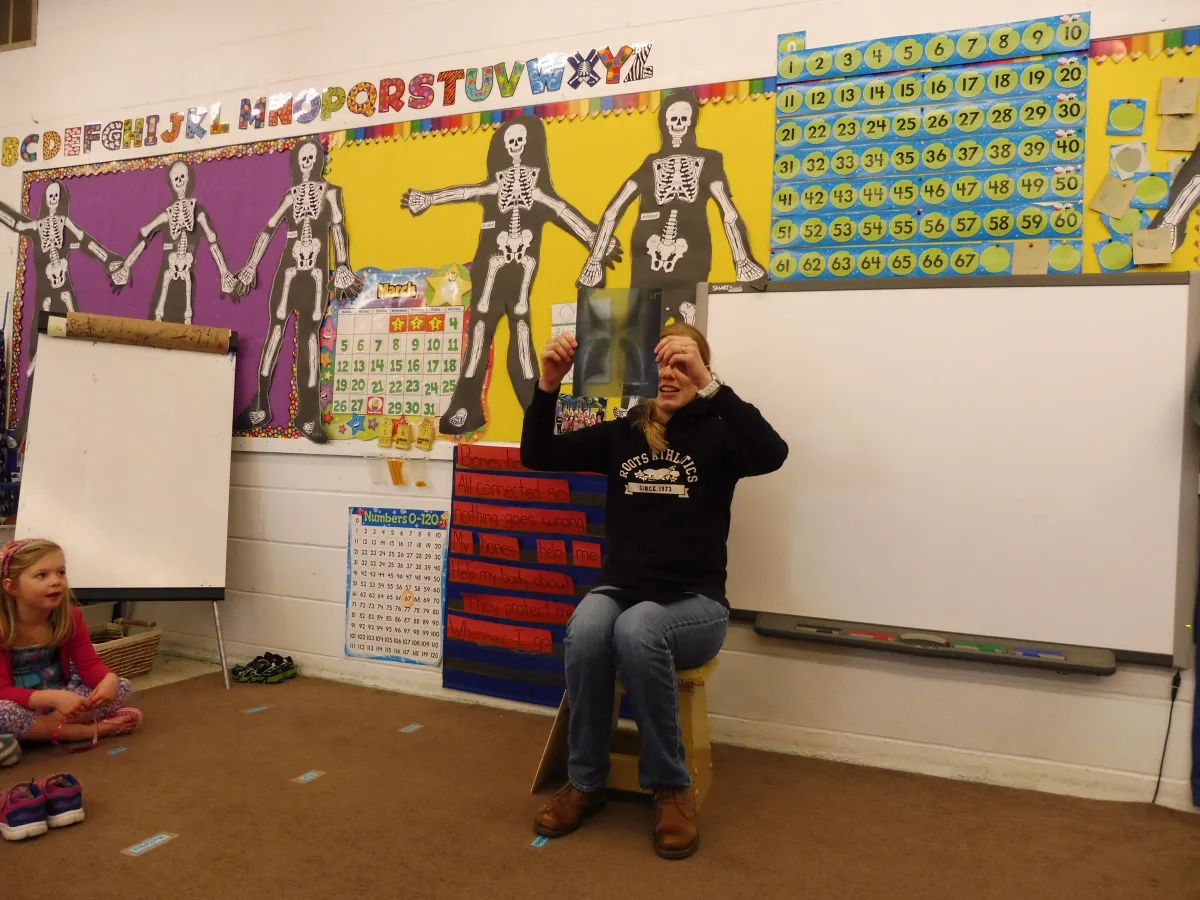 In Kindergarten, we have been learning about our skeletons. We can put a paper skeleton together, knowing where all our major bones are located. Here is what we know about bones.