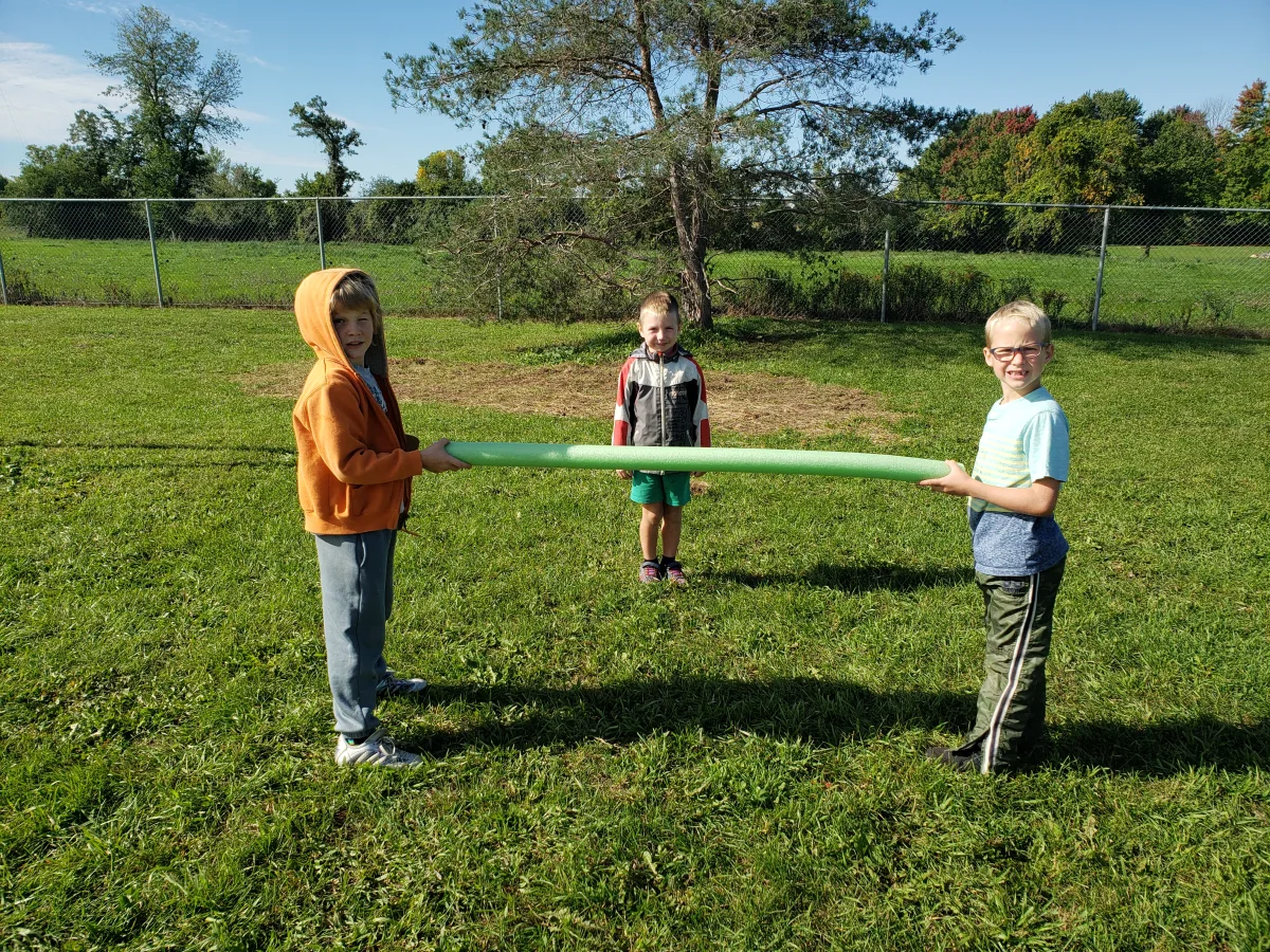 We use pool noodles to give us a visual reminder to keep our distance.