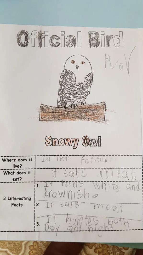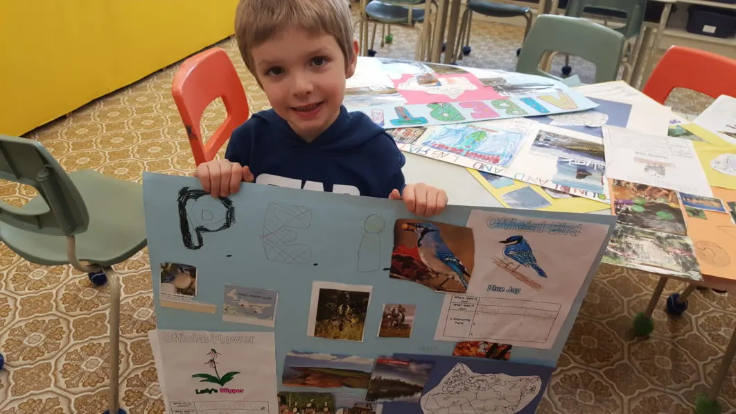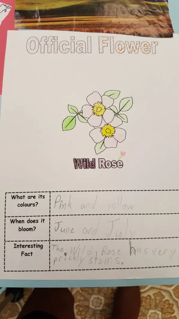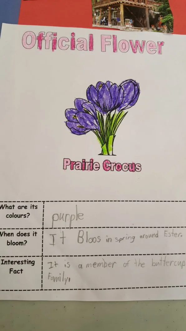 The Grade 1&2s recently completed projects on the provinces and territories of Canada. Done independently during class time, students were first taught how to locate information on the provincial bird and flower for their chosen province/territory. They were all given information cards on the bird or flower for their province, and from those cards they located the information needed for their poster.