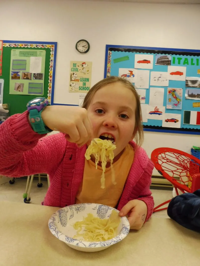 This activity was an amazing learning experience for our class. They learned how to make something with their own hands, follow processes, new language (such as linguine, spaghetti or farfalle), and gained an appreciation for the work involved to make something for yourself. A big thank you to Mrs. Geertsema for ALL of her help, patience, and willingness to come to our class and help us learn new things! Grazie!