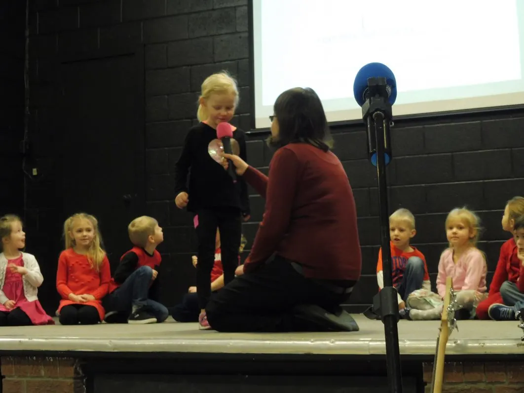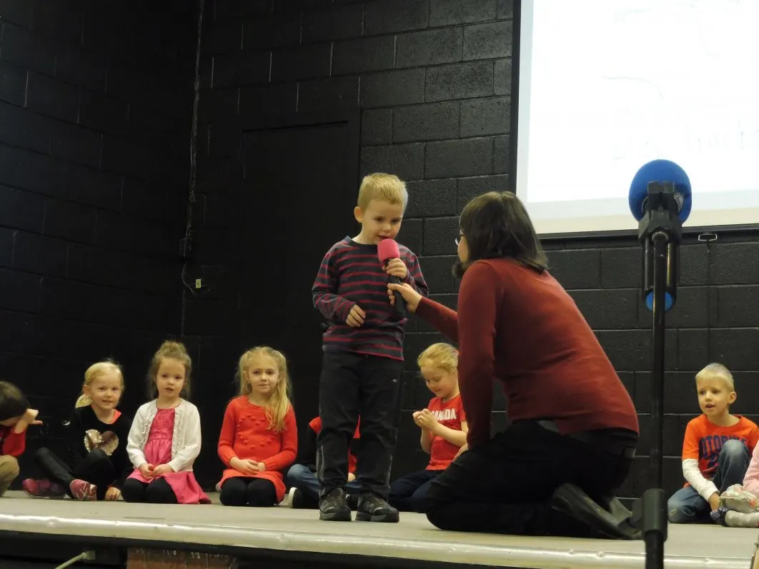 The gym was full as the Kindergarten students took to the stage and led us in chapel this morning.