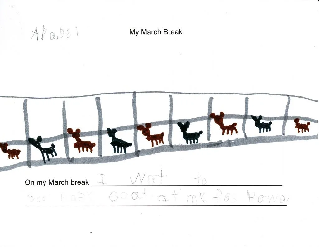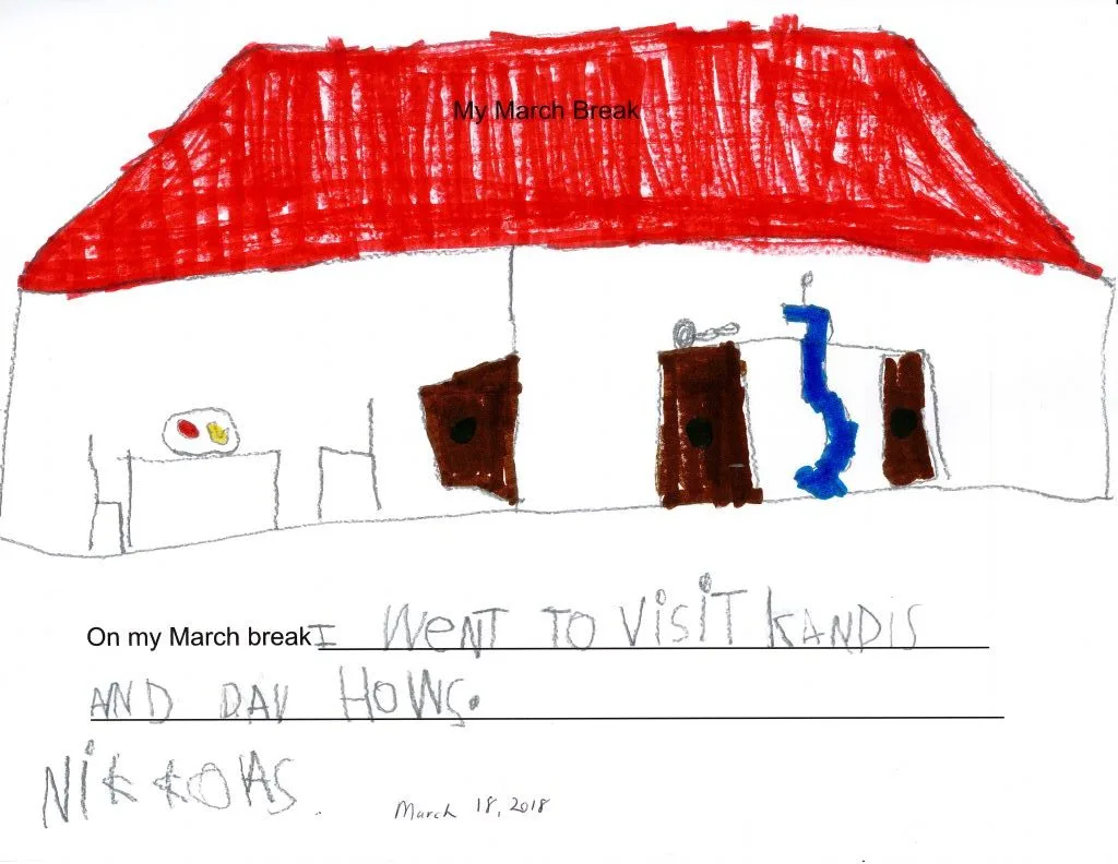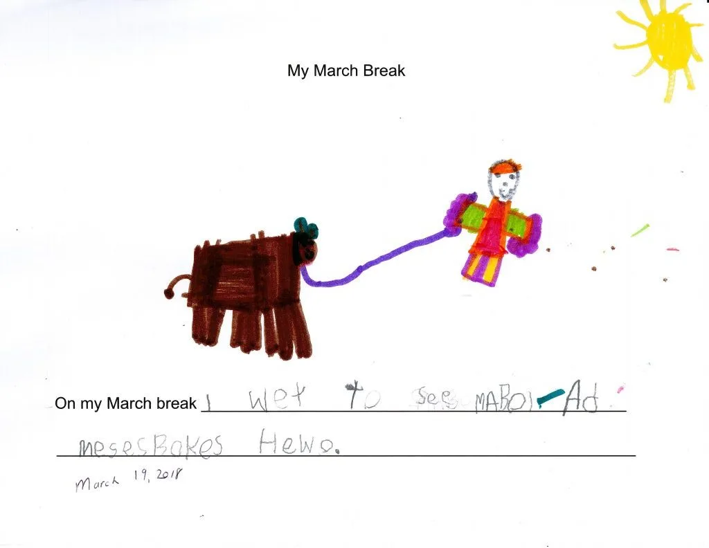 And then they did some writing about what they did over March break. As you can see they are able to spell many sight words and are using the letters and sounds they know to write new words. Fantastic!