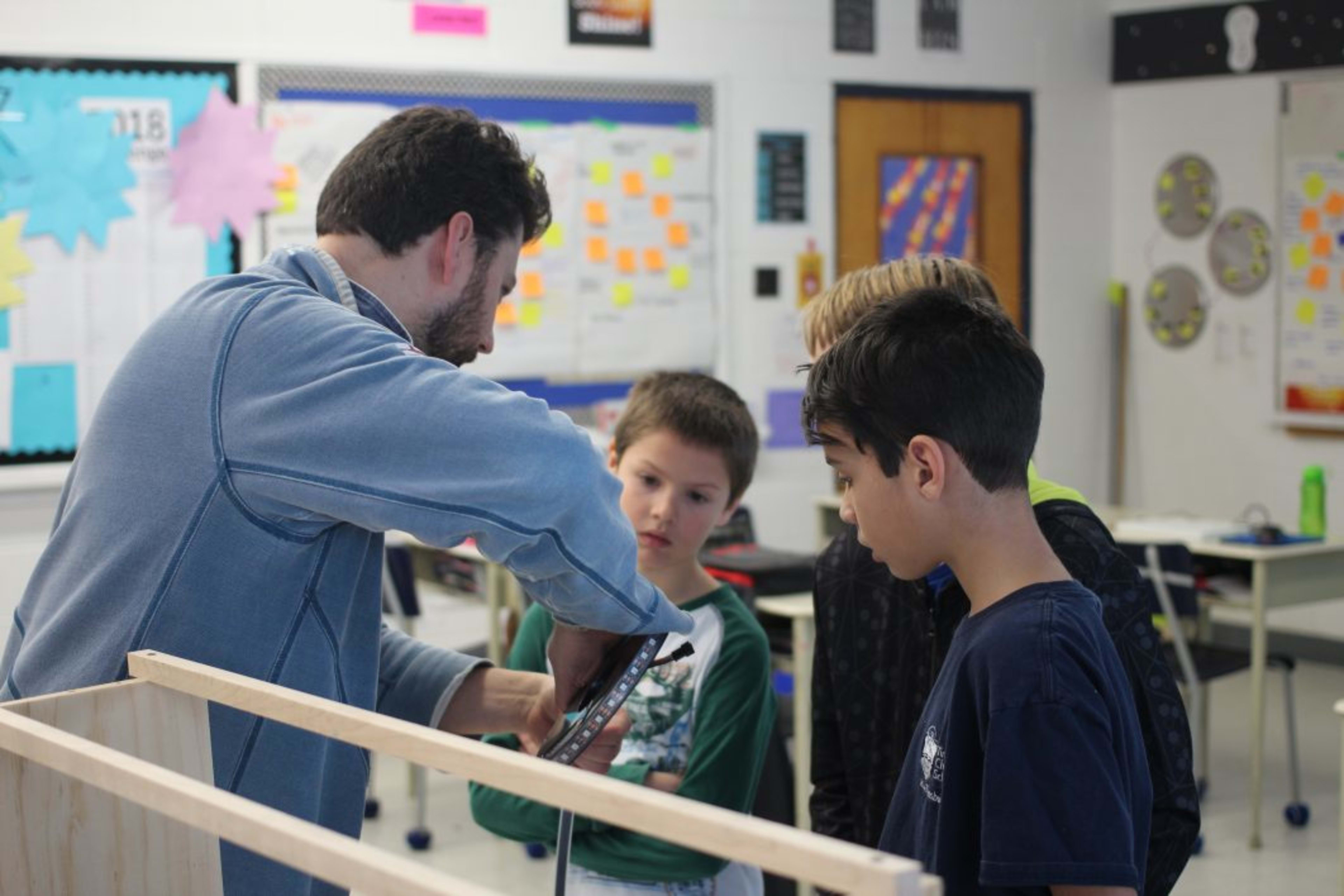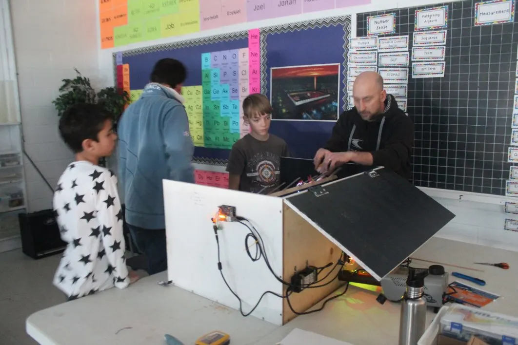 Mr. Pool and Mr. Geertsema led a group of 3 students as they designed and wired an amazing light and sound show.
