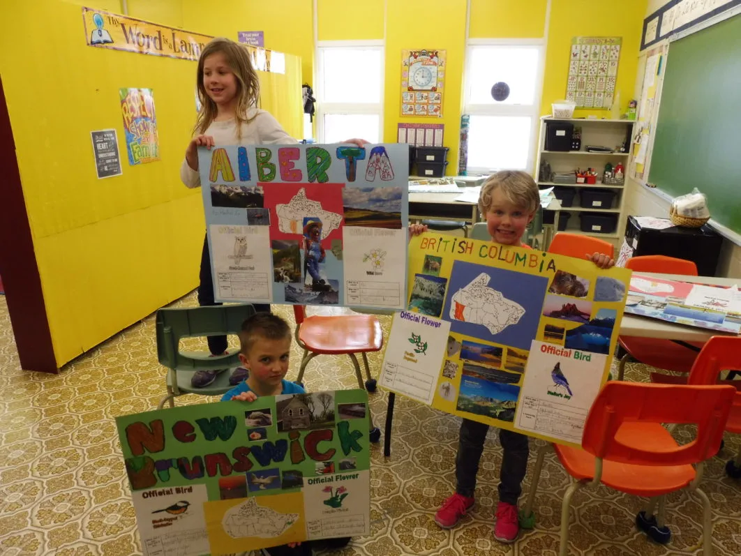 In Grade 1 and 2, students finished their Canadian province projects. The students had been doing research to learn interesting facts and they were excited to work on their posters. As you can see they are bright and colourful and informative!